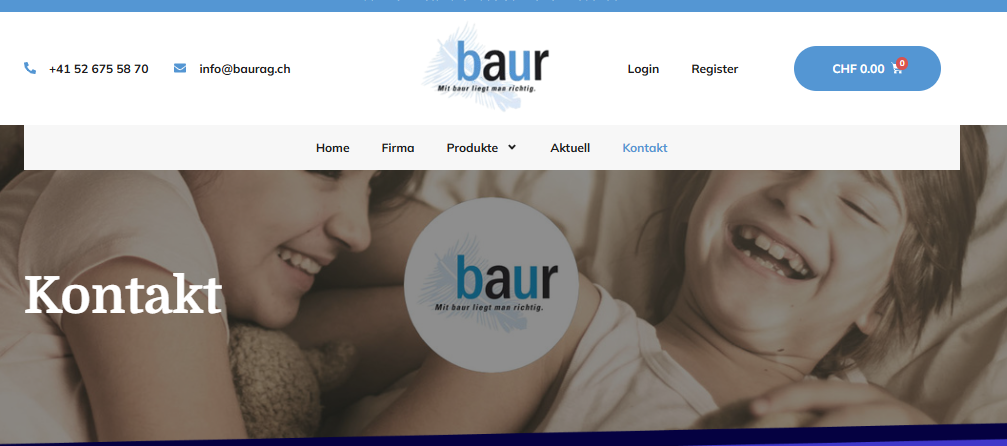 Kunden können über ein einfaches Kontaktformular oder die eingebundenen Kommunikationsdaten direkt mit Baur AG in Verbindung treten – ideal für Fragen, Bestellungen oder individuelle Beratungen.